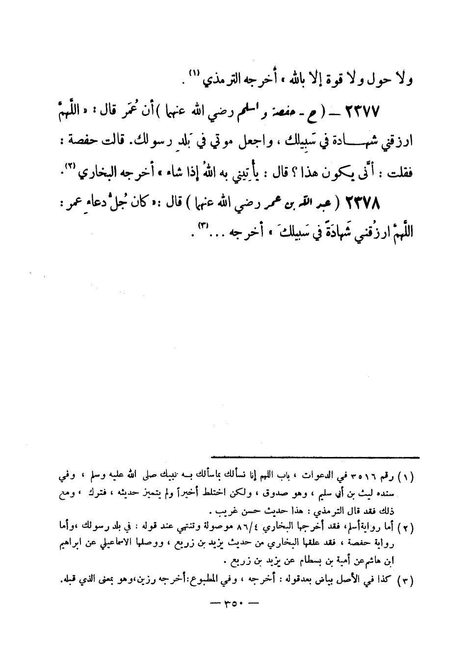 2378 - () عبد الله بن عمر - رضي الله عنهما -: قال: «كان جُلُّ دعاءِ عمر: اللَّهمَّ ارزُقني شَهَادَة في سَبيلكَ» . أخرجه ... (¬1) .