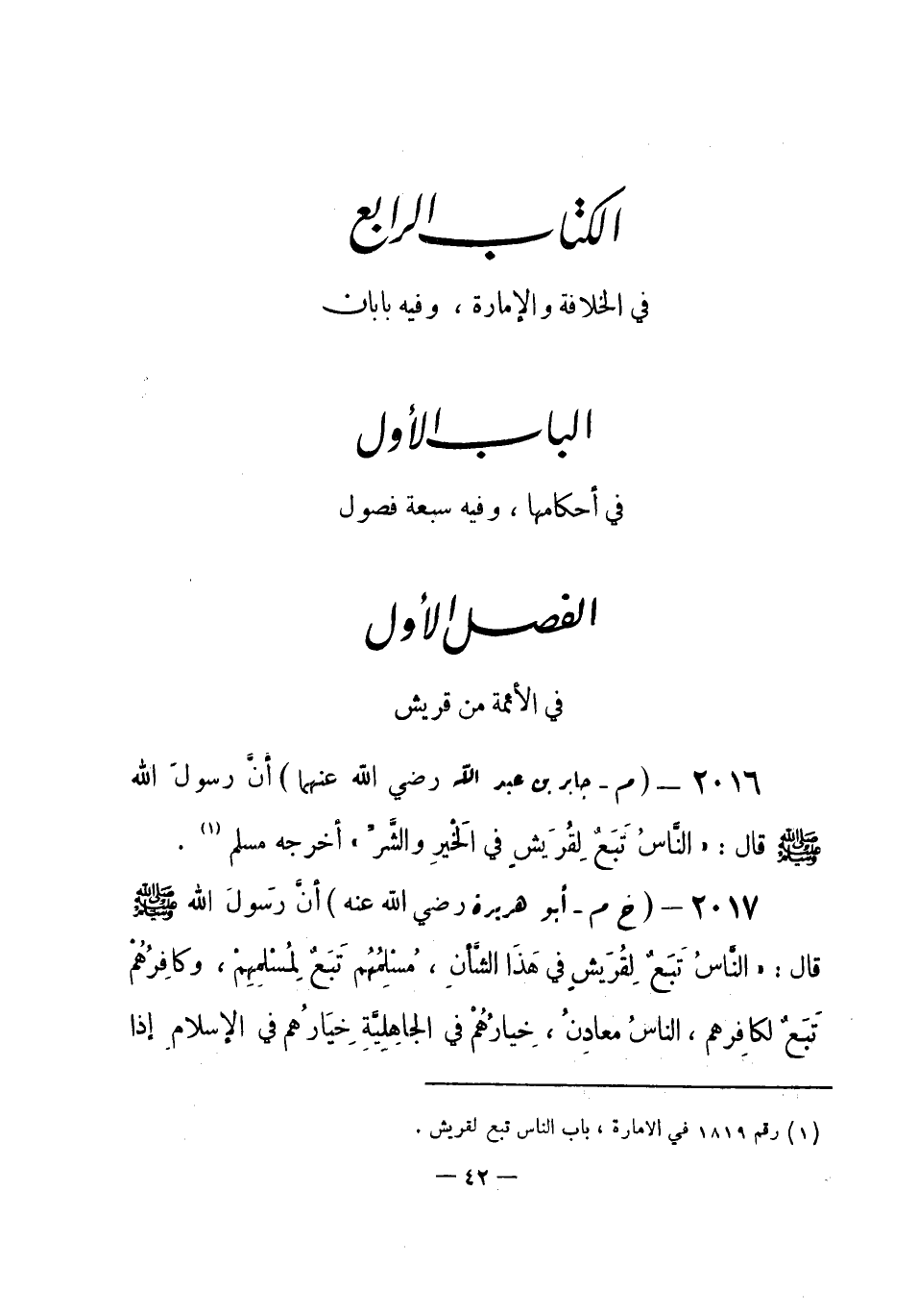 (¬1) رقم (1819) في الإمارة، باب الناس تبع لقريش.