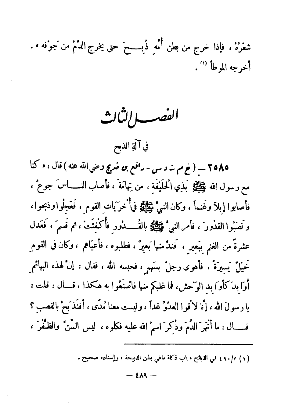 الفصل الثالث: في آلة الذبح