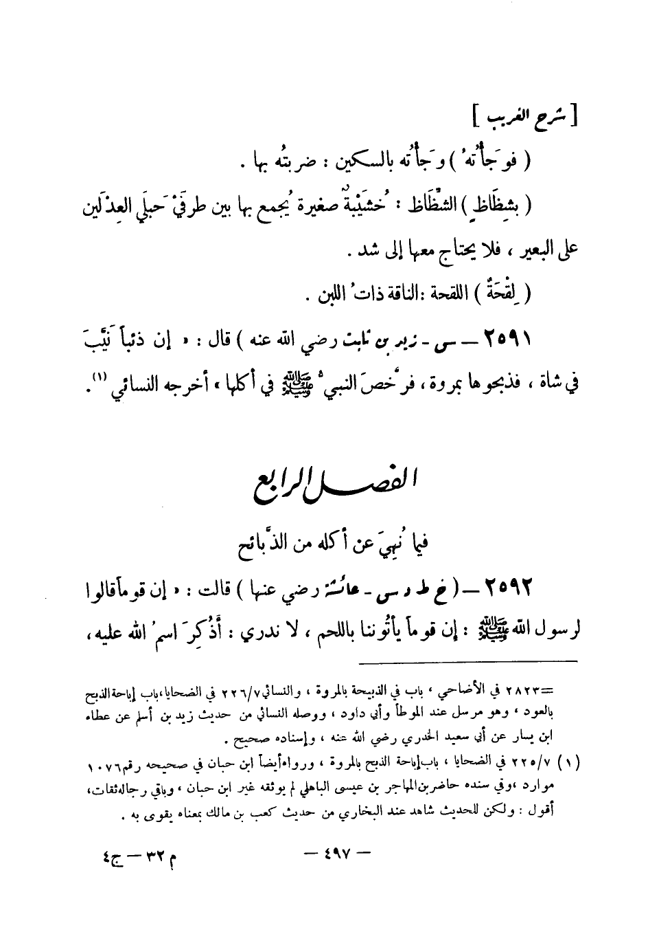 الفصل الرابع: فيما نهي عن أكله من الذبائح