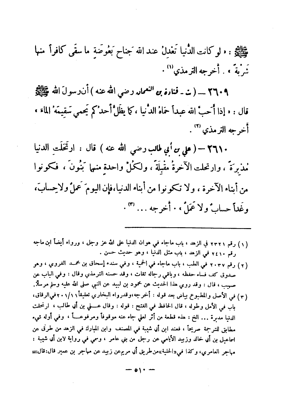 2610 - (خ) علي بن أبي طالب - رضي الله عنه -: قال: «ارتَحَلَتِ الدنيا مُدْبِرَة، وارتحلت الآخرةُ مُقْبِلَة، ولكُلِّ واحدةٍ منهما بَنُونَ، فكونوا من أبناء الآخرة، ولا تكونوا من أبناء الدنيا، فإِن اليومَ عَملٌ ولا حِسابَ، وغَدا حسابٌ ولا عَمَلٌ» . أَخرجه ... (¬1) .