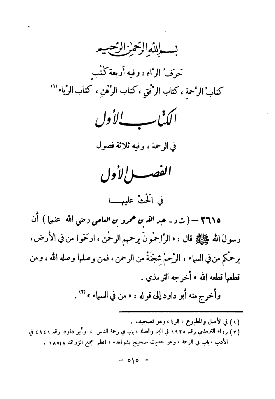 الكتاب الأول: في الرحمة، وفيه ثلاثة فصول