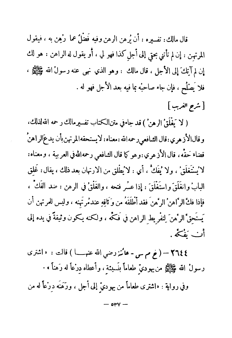 (¬1) رواه البخاري 5 / 100 في الرهن، باب من رهن درعه، وباب الرهن عند اليهود وغيرهم، وفي البيوع، باب شراء النبي صلى الله عليه وسلم بالنسيئة، وباب شراء الإمام الحوائج بنفسه، وباب شراء الطعام إلى أجل، وفي السلم، باب الكفيل في السلم، وباب الرهن في السلم، وفي الاستقراض، باب من اشترى بالدين وليس عنده ثمنه، وفي الجهاد، باب ما قيل في درع النبي صلى الله عليه وسلم والقميص في الحرب، وفي المغازي، باب وفاة النبي صلى الله عليه وسلم، ومسلم رقم (1603) في المساقاة، باب الرهن وجوازه في الحضر والسفر، والنسائي 7 / 288 و 303 في البيوع، باب الرجل يشتري الطعام إلى أجل ويسترهن البائع منه بالثمن رهناً، وباب اختلاف المتبايعين في الثمن.