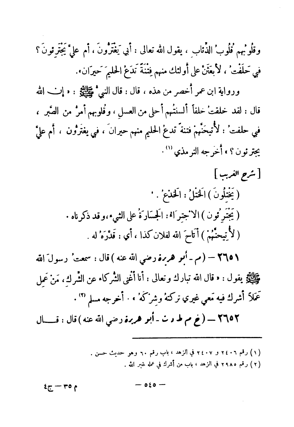 (¬1) رقم (2985) في الزهد، باب من أشرك في عمله غير الله.