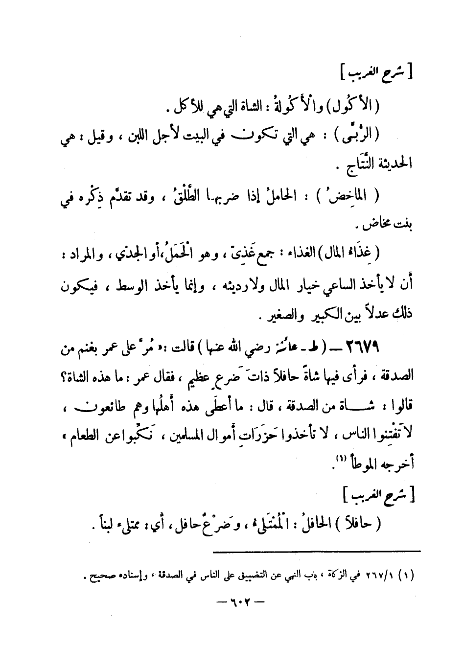 S (حافلاً) : الحافل: الممتلئ وضرع حافل، أي: ممتلئ لبناً. -[603]-