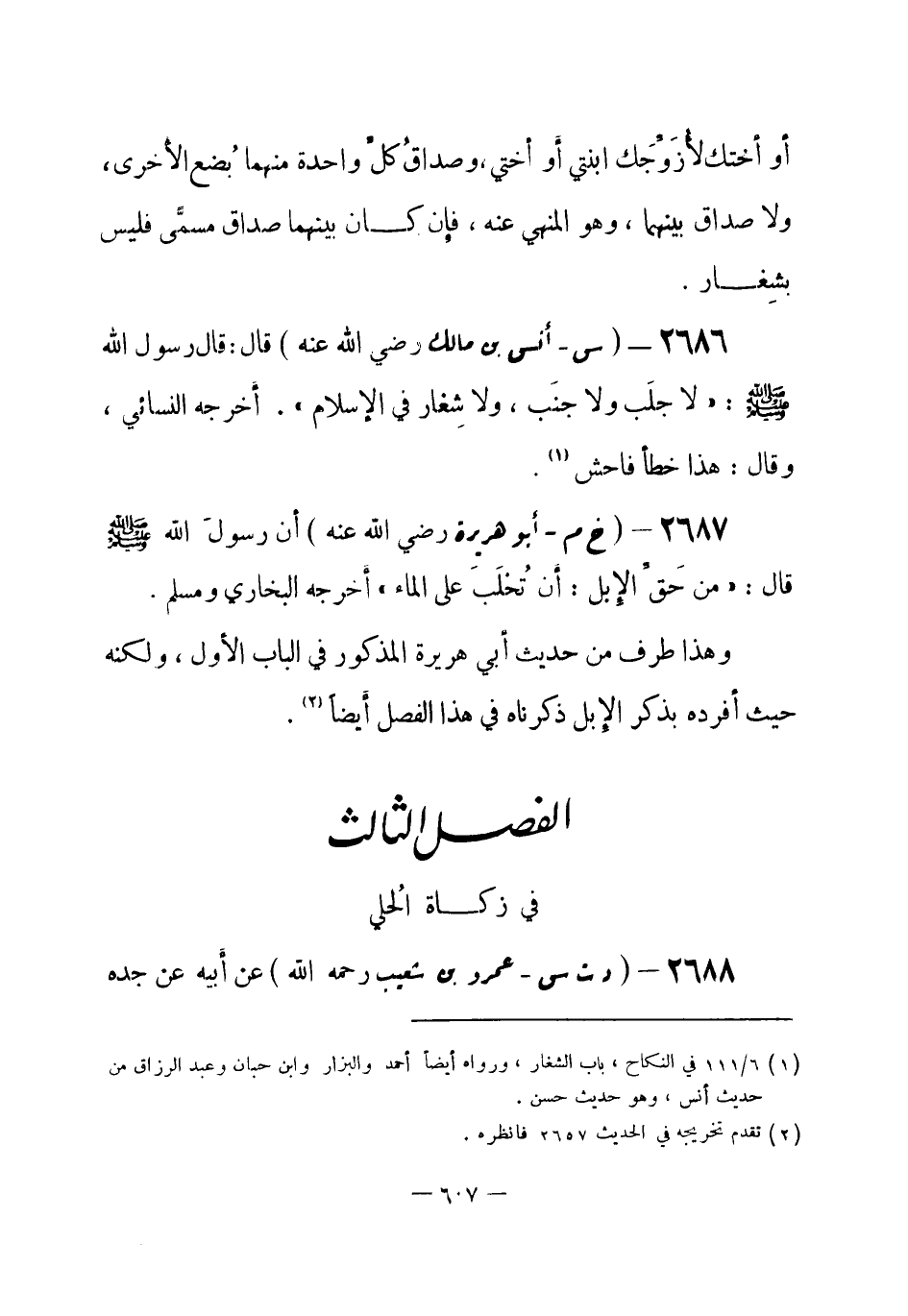 2686 - (س) أنس بن مالك - رضي الله عنه -: قال: قال رسول الله -صلى الله عليه وسلم-: «لا جَلَبَ ولا جنَب، ولا شِغار في الإسلام» . أَخرجه النسائي، وقال: هذا خطأ فاحش (¬1) .