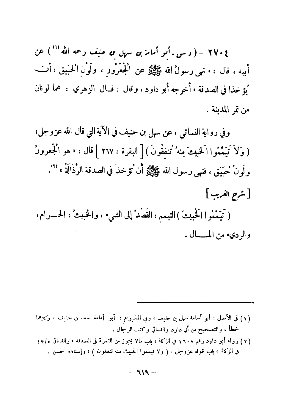 (¬2) رواه أبو داود رقم (1607) في الزكاة، باب ما لا يجوز من الثمرة في الصدقة، والنسائي 5 / 43 في الزكاة، باب قوله عز وجل: {ولا تيمموا الخبيث منه تنفقون} ، وإسناده حسن.