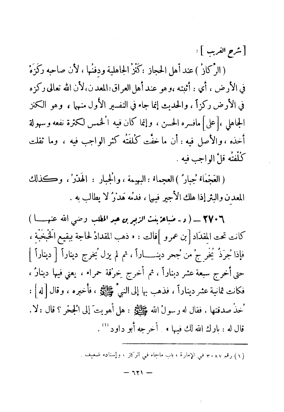 (¬1) رقم (3087) في الإمارة، باب ما جاء في الركاز، وإسناده ضعيف.