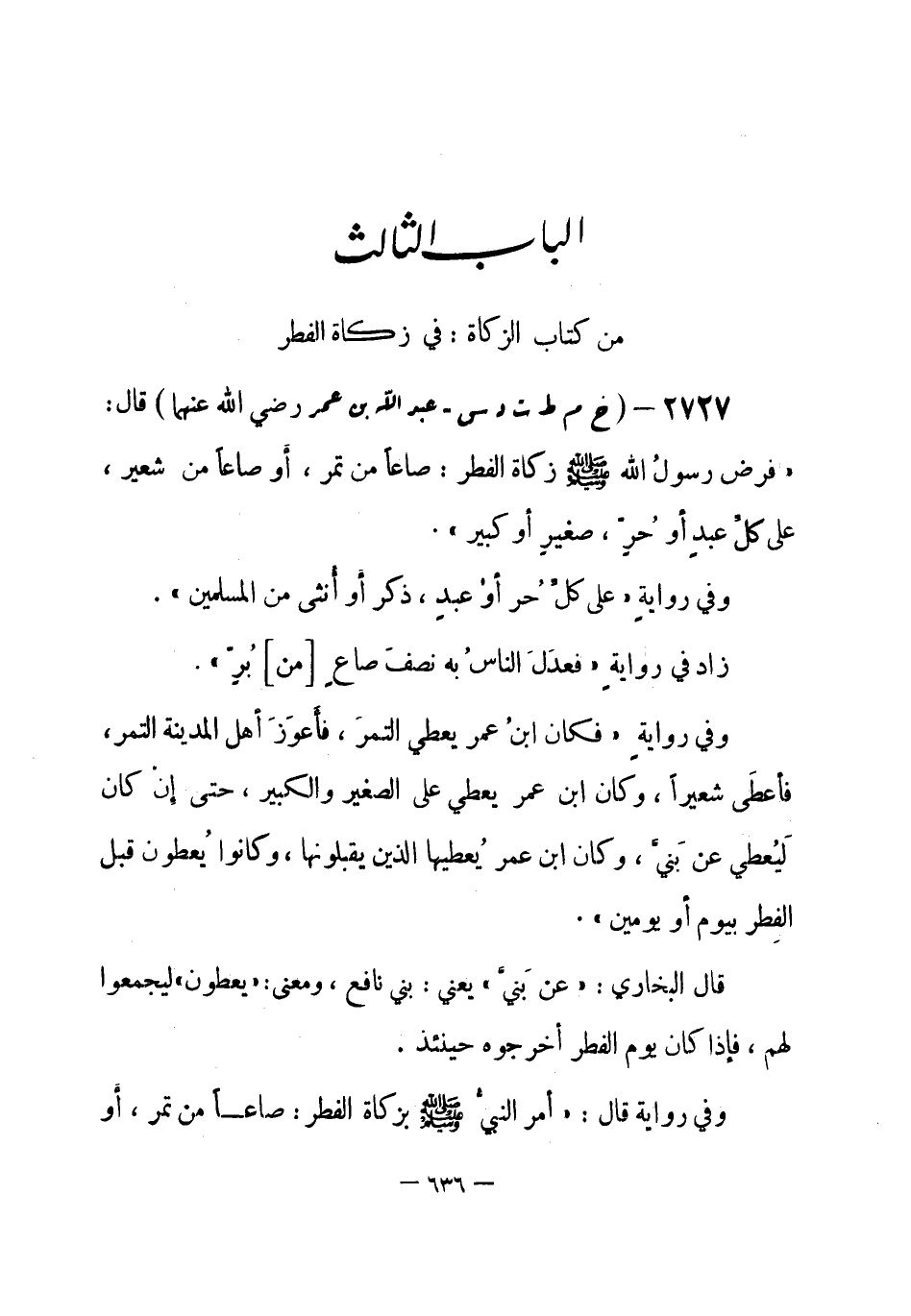 الباب الثالث من كتاب الزكاة: في زكاة الفطر