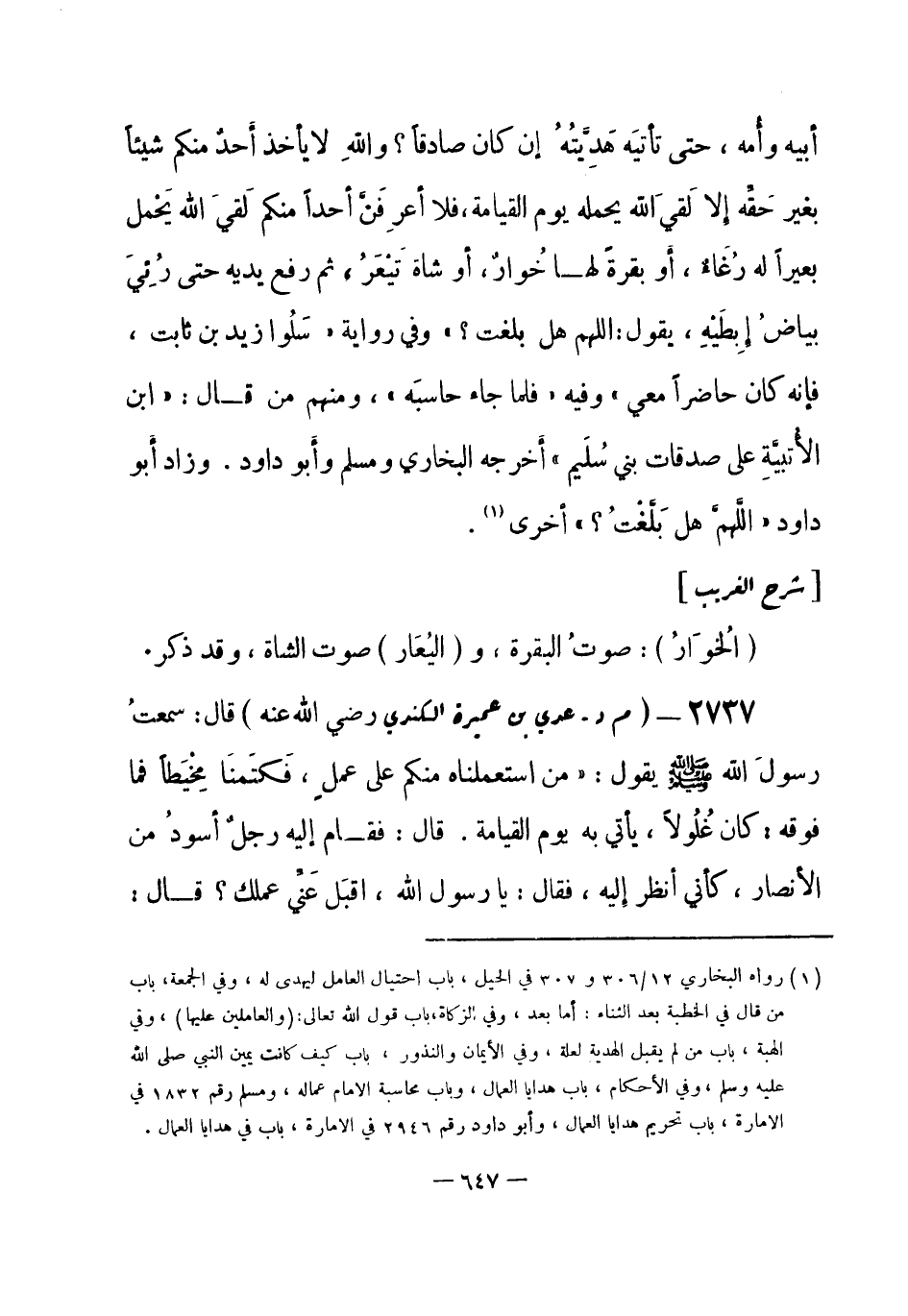 (¬1) رواه مسلم رقم (1833) في الإمارة، باب تحريم هدايا العمال، وأبو داود رقم (3581) في الأقضية، باب في هدايا العمال.