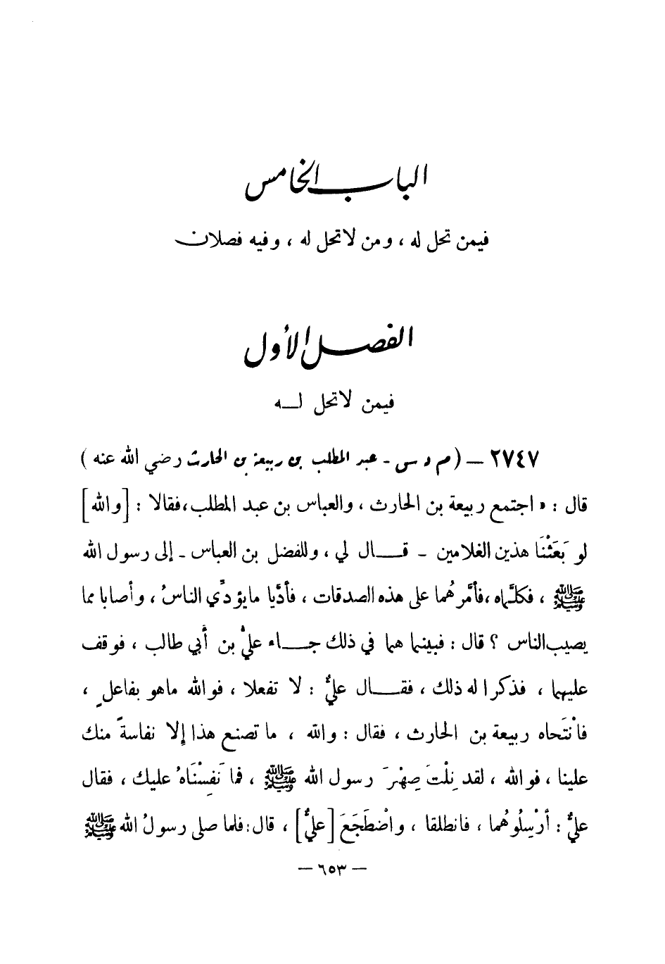 الباب الخامس: فيمن تحل له، ومن لا تحل له، وفيه فصلان
