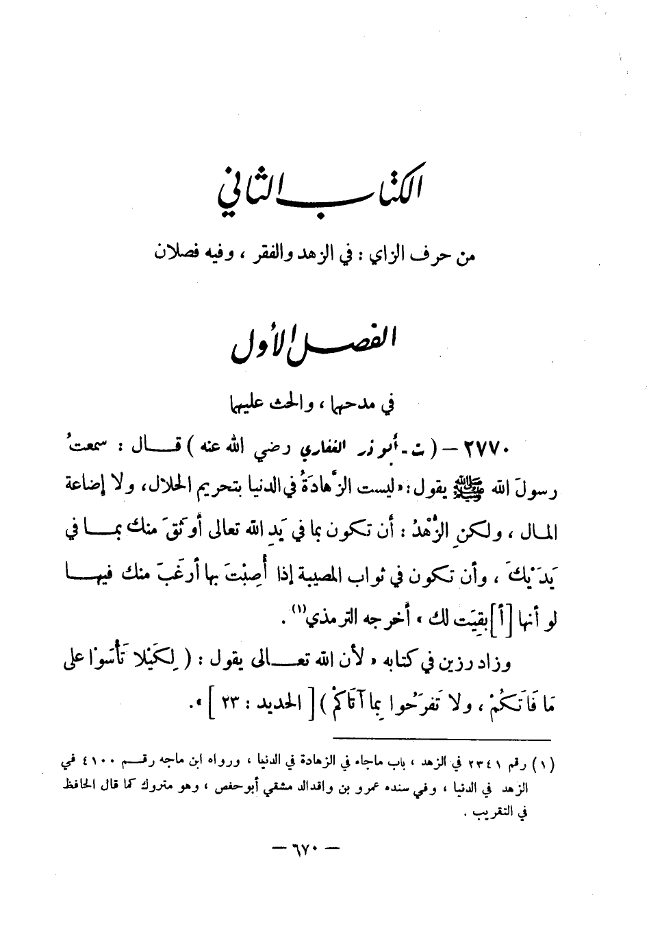 الكتاب الثاني من حرف الزاي: في الزهد والفقر، وفيه فصلان