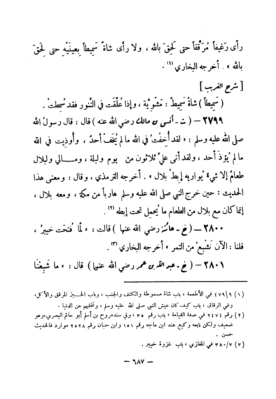 2801 - (خ) عبد الله بن عمر - رضي الله عنهما -: قال: «ما شَبِعْنَا -[688]- من تمرٍ حتى فتحنا خيبر» . أخرجه البخاري (¬1) .