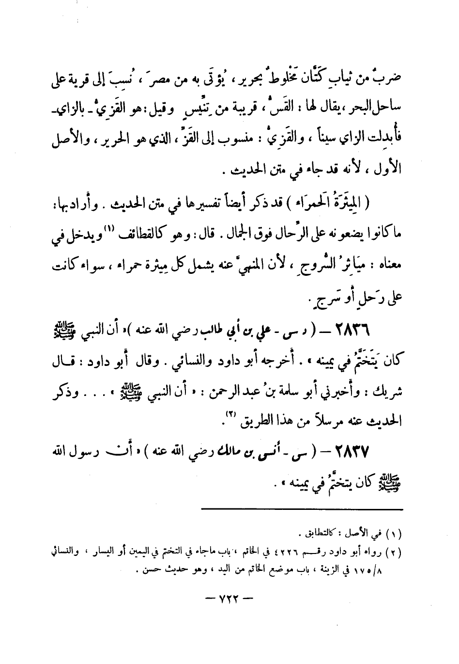 2837 - (س) أنس بن مالك - رضي الله عنه -: «أَنَّ رسولَ الله - صلى الله عليه وسلم- كان يتختَّمُ في يمينه» . -[723]-