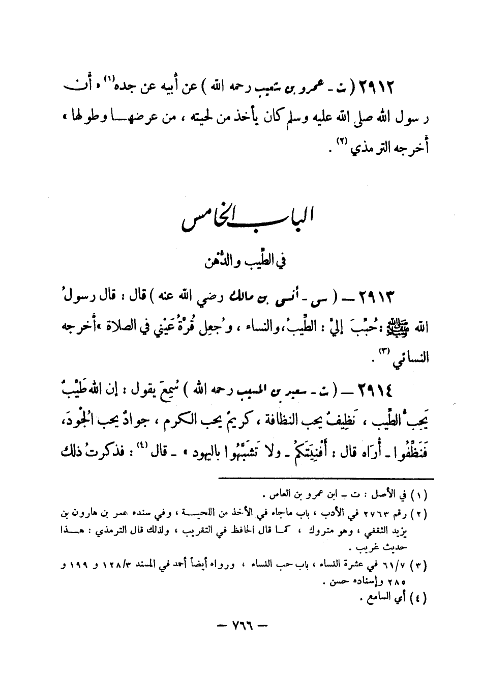 2914 - (ت) سعيد بن المسيب - رحمه الله -: سُمِعَ يقول: «إِن الله طَيِّبٌ يحِبُّ الطِّيب، نظِيفٌ يحب النظافة، كريمٌ يحب الكرم، جوادٌ يحب الجُودَ، فَنَظِّفُوا - أُراه قال: أَفْنِيَتَكُم- ولا تَشَبَّهُوا باليهود» . قال (¬1) : فذكرتُ ذلك -[767]- لمُهَاجِر بن مِسمارٍ، فقال: حدَّثَنيه عامرُ ابن سعد عن أبيه عن النبيِّ - صلى الله عليه وسلم- مثله، إِلا أنه قال: «نَظِّفُوا أَفنيتَكم» . أخرجه الترمذي (¬2) .