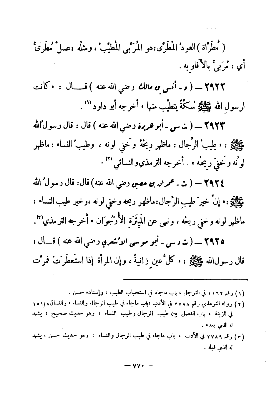 2922 - (د) أنس بن مالك - رضي الله عنه -: قال: «كانت لرسولِ الله - صلى الله عليه وسلم- سُكَّةٌ يتطيَّب منها» . أَخرجه أبو داود (¬1) .