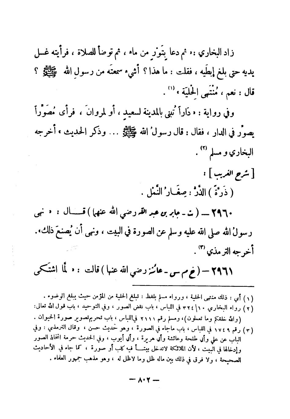 2960 - (ت) جابر بن عبد الله - رضي الله عنهما -: قال: «نهى رسول الله - صلى الله عليه وسلم- عن الصورة في البيت، ونهى أن يُصنعَ ذلك» . أَخرجه الترمذي (¬1) .