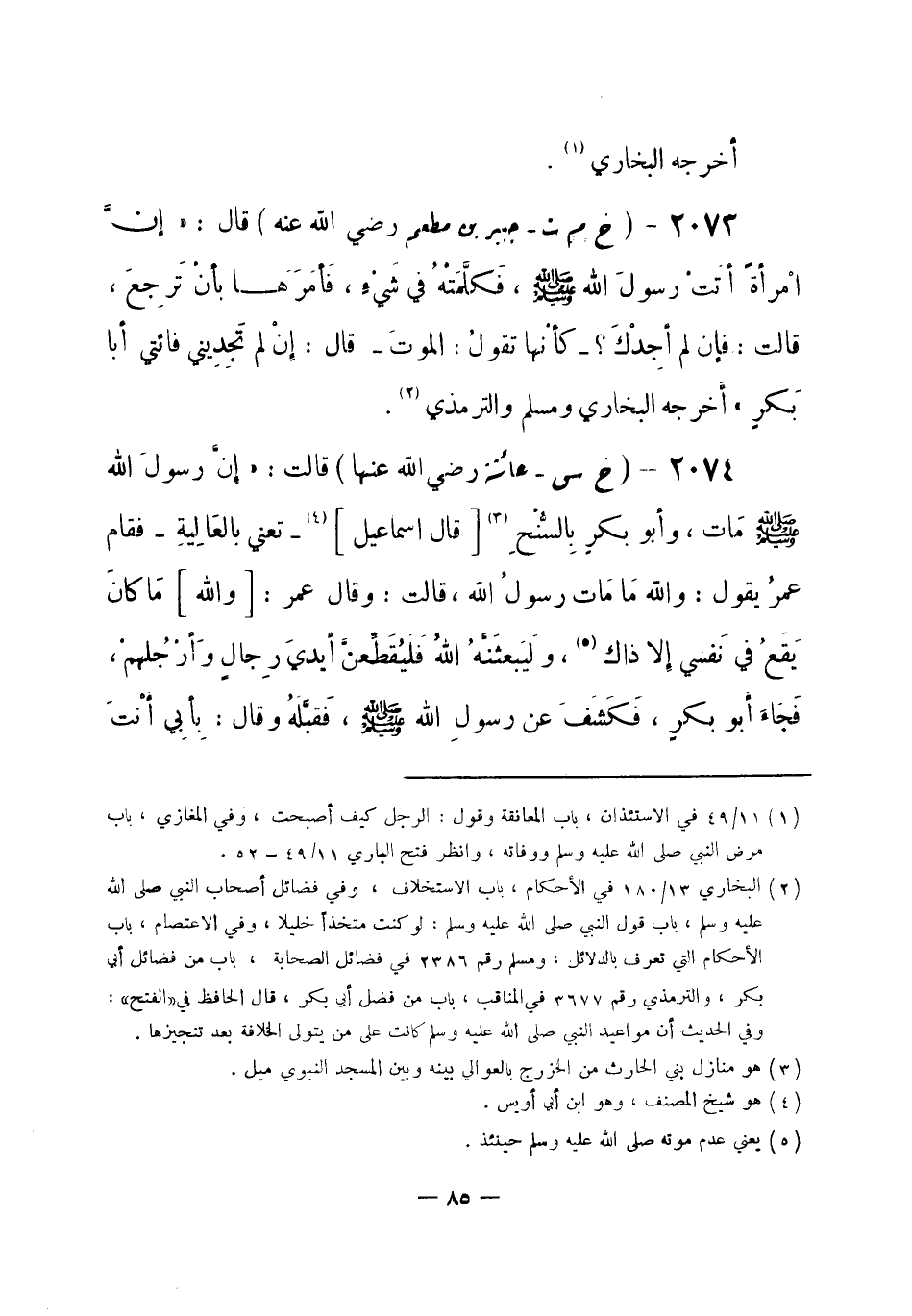 (¬8) البخاري 7 / 22 و 23 في فضائل أصحاب النبي صلى الله عليه وسلم، باب قول النبي صلى الله عليه وسلم: لو كنت متخذاً خليلاً، وفي الجنائز، باب الدخول على الميت بعد الموت إذا أدرج في كفنه، وفي المغازي، باب مرض النبي صلى الله عليه وسلم ووفاته.