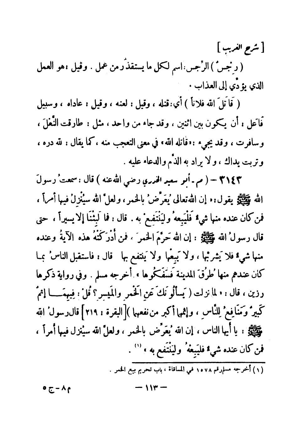 (¬1) أخرجه مسلم رقم (1578) في المساقاة، باب تحريم بيع الخمر.
