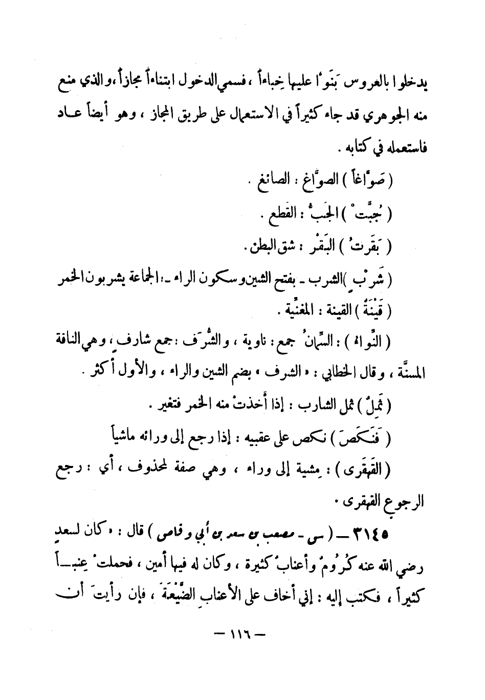 3145 - (س) مصعب بن سعد بن أبي وقاص قال: «كان لسعد رضي الله عنه كرُوم وأعناب كثيرة، وكان له فيها أمين، فحملتْ عِنباً كثيراً، فكتب إليه: إني أخاف على الأعناب الضَّيْعَةَ، فإن رأيتَ أن -[117]- أعْصِرَهُ عَصَرتُه، فكتب إليه سعد: إذا جاءك كتابي هذا فاعتزل ضَيْعَتي، فوالله، لا ائتمِنُكَ على شيء بعده أبداً فعزله عن ضَيْعَتِهِ» . أخرجه النسائي (¬1) .