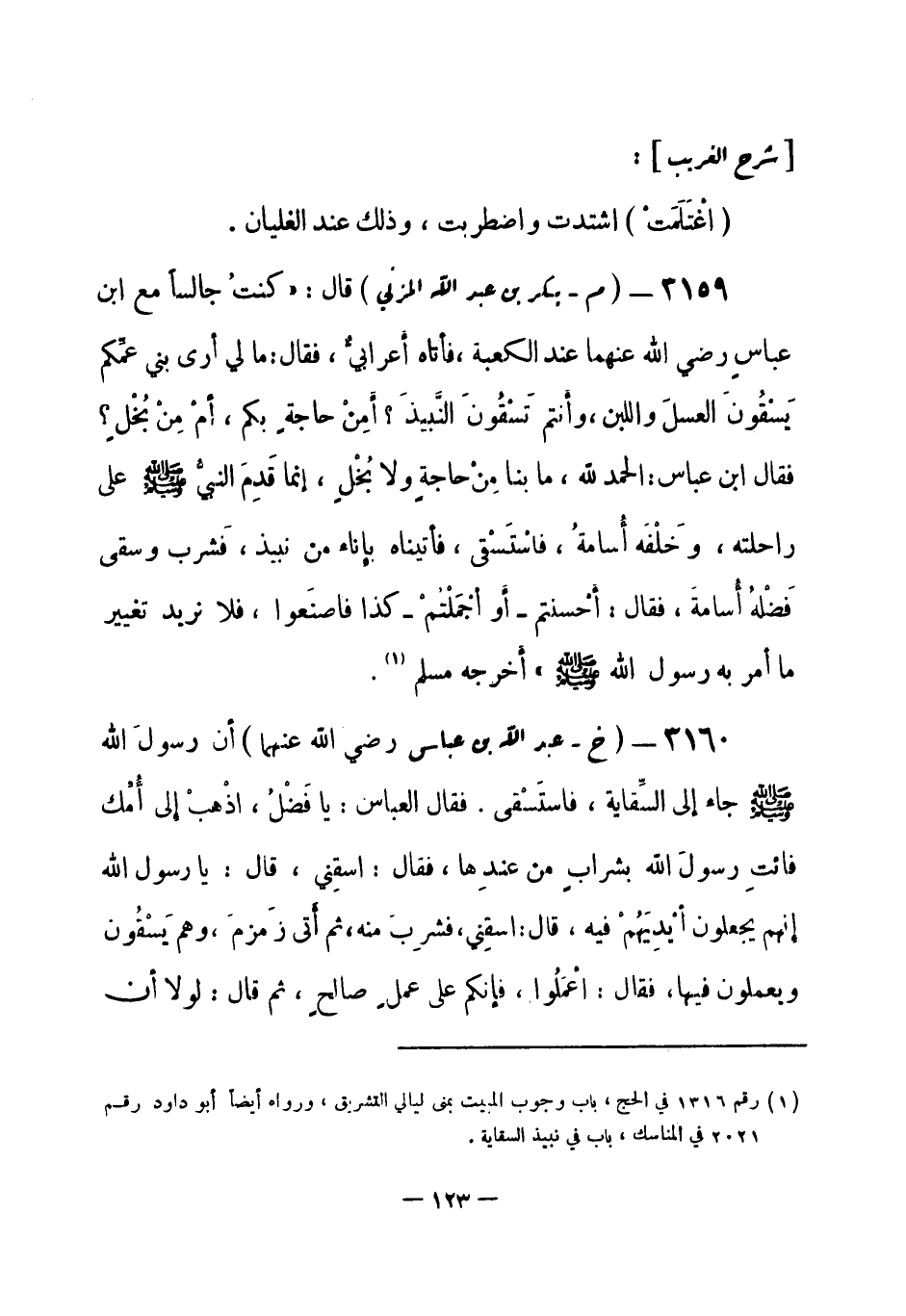 (¬1) رقم (1316) في الحج، باب وجوب المبيت بمنى ليالي التشريق، ورواه أيضاً أبو داود رقم (2021) في المناسك، باب في نبيذ السقاية.