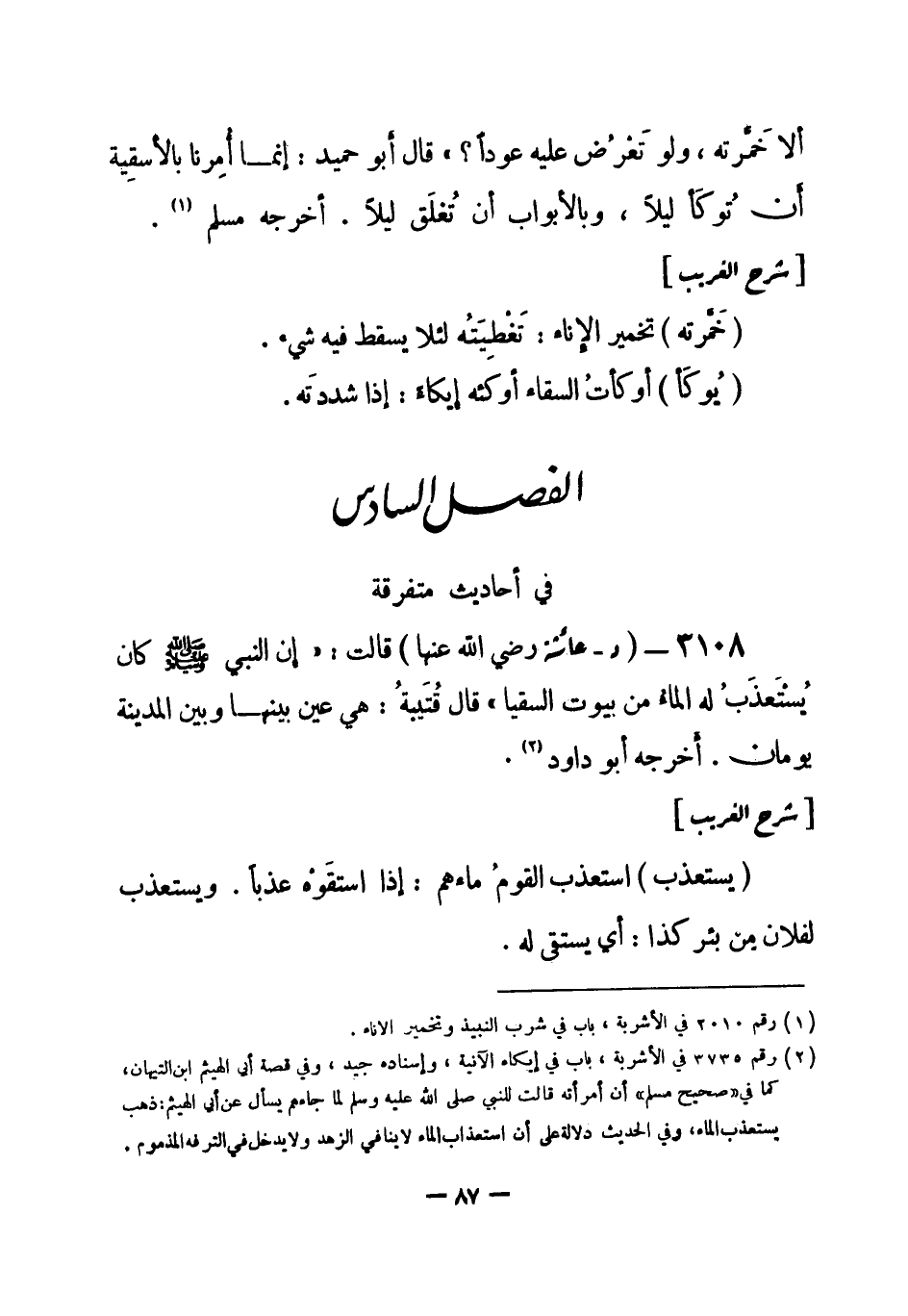 (¬1) رقم (3735) في الأشربة، باب في إيكاء الآنية، وإسناده جيد، وفي قصة أبي الهيثم ابن التيهان، كما في " صحيح مسلم " أن امرأته قالت للنبي صلى الله عليه وسلم لما جاءهم يسأل عن أبي الهيثم: ذهب يستعذب الماء، وفي الحديث دلالة على أن استعذاب الماء لا ينافي الزهد ولا يدخل في الترفه المذموم.