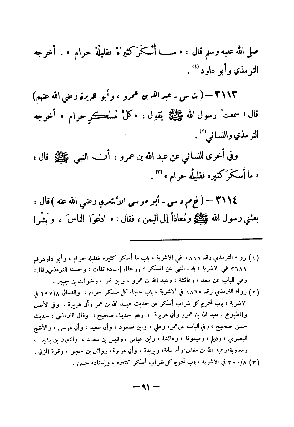 3113 - (ت س) عبد الله بن عمرو، وأبو هريرة - رضي الله عنهم - قال: سمعتُ رسول الله - صلى الله عليه وسلم- يقول: «كلُّ مُسْكر حرام» أخرجه الترمذي والنسائي (¬1) .