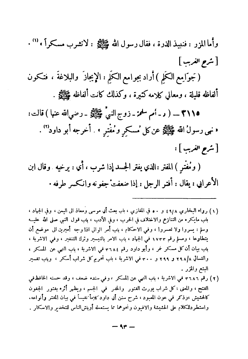 3115 - (د) أم سلمة - زوج النبي - صلى الله عليه وسلم- رضي الله عنها -: قالت: «نهى رسولُ الله -صلى الله عليه وسلم- عن كل مسكر ومُفْتِر» . أخرجه أبو داود (¬1) .