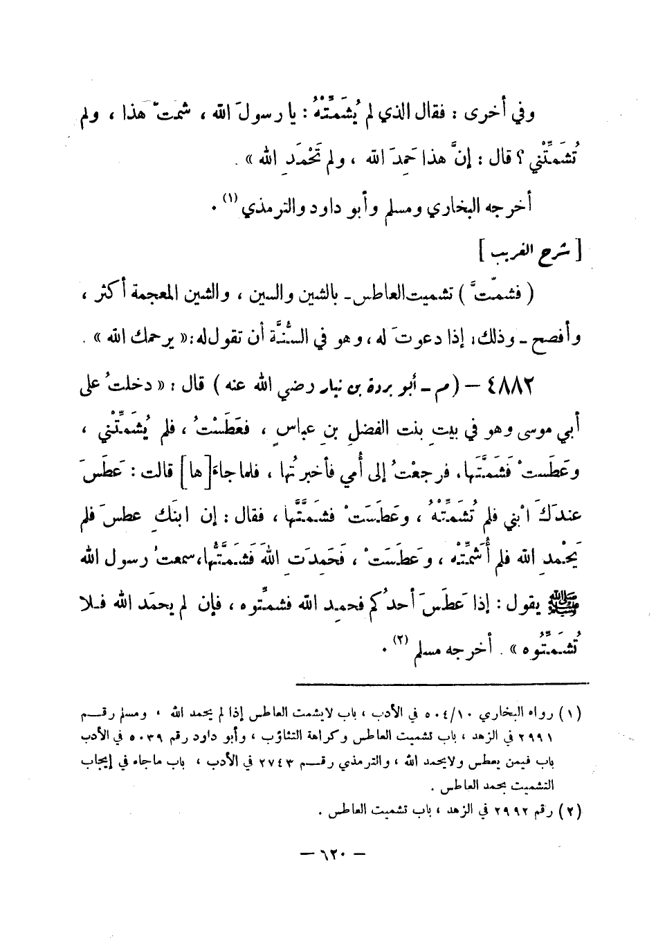 (¬1) رقم (2992) في الزهد، باب تشميت العاطس.