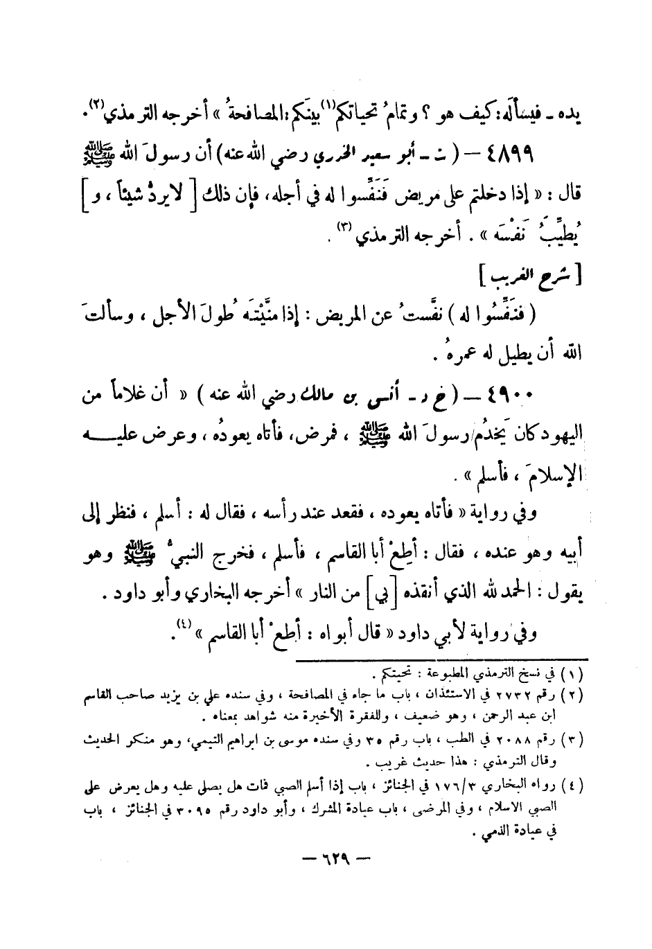 (¬1) رواه البخاري 3 / 176 في الجنائز، باب إذا أسلم الصبي فمات هل يصلى عليه وهل يعرض على الصبي الإسلام، وفي المرضى، باب عيادة المشرك، وأبو داود رقم (3095) في الجنائز، باب في عيادة الذمي.