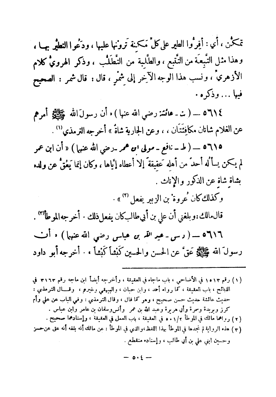 (¬2) هذه الرواية لم نجدها في الموطأ بهذا اللفظ، والذي في الموطأ: عن مالك أنه بلغه أنه عق عن حسن وحسين ابني علي بن أبي طالب، وإسناده منقطع.