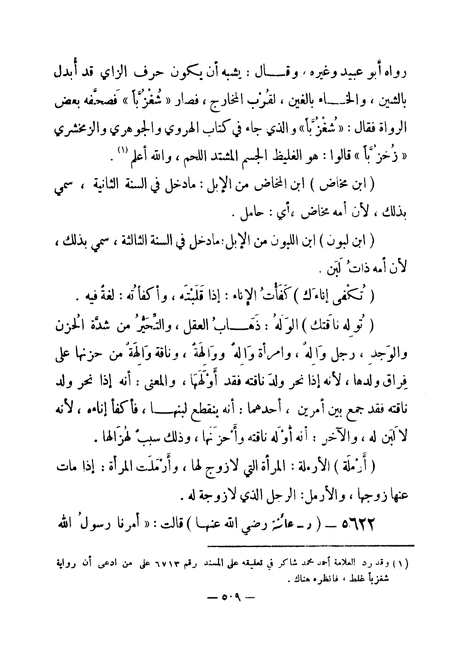 5622 - (د) عائشة - رضي الله عنها - قالت: «أمرنا رسول الله -[510]- صلى الله عليه وسلم- من كل خمسين شاة شاة» .
