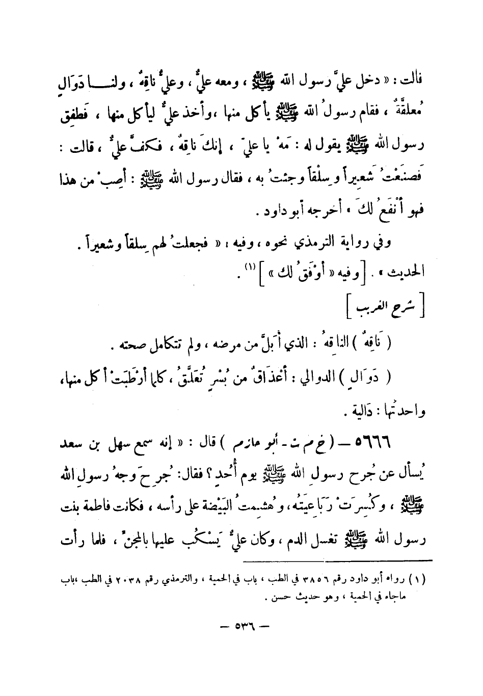 (¬1) رواه البخاري 6 / 69 في الجهاد، باب المجن ومن يتترس بترس صاحبه، وباب لبس البيضة، باب دواء الجرح بإحراق الحصير، وفي الوضوء، باب غسل المرأة أباها الدم عن وجهه، وفي المغازي، باب ما أصاب النبي صلى الله عليه وسلم من الجرح يوم أحد، وفي النكاح، باب {ولا يبدين زينتهن إلا لبعولتهن} ، وفي الطب، باب حرق الحصير لسد الدم، ومسلم رقم (1790) في الجهاد والسير، باب غزوة أحد، والترمذي رقم (2086) في الطب، باب التداوي بالرماد.