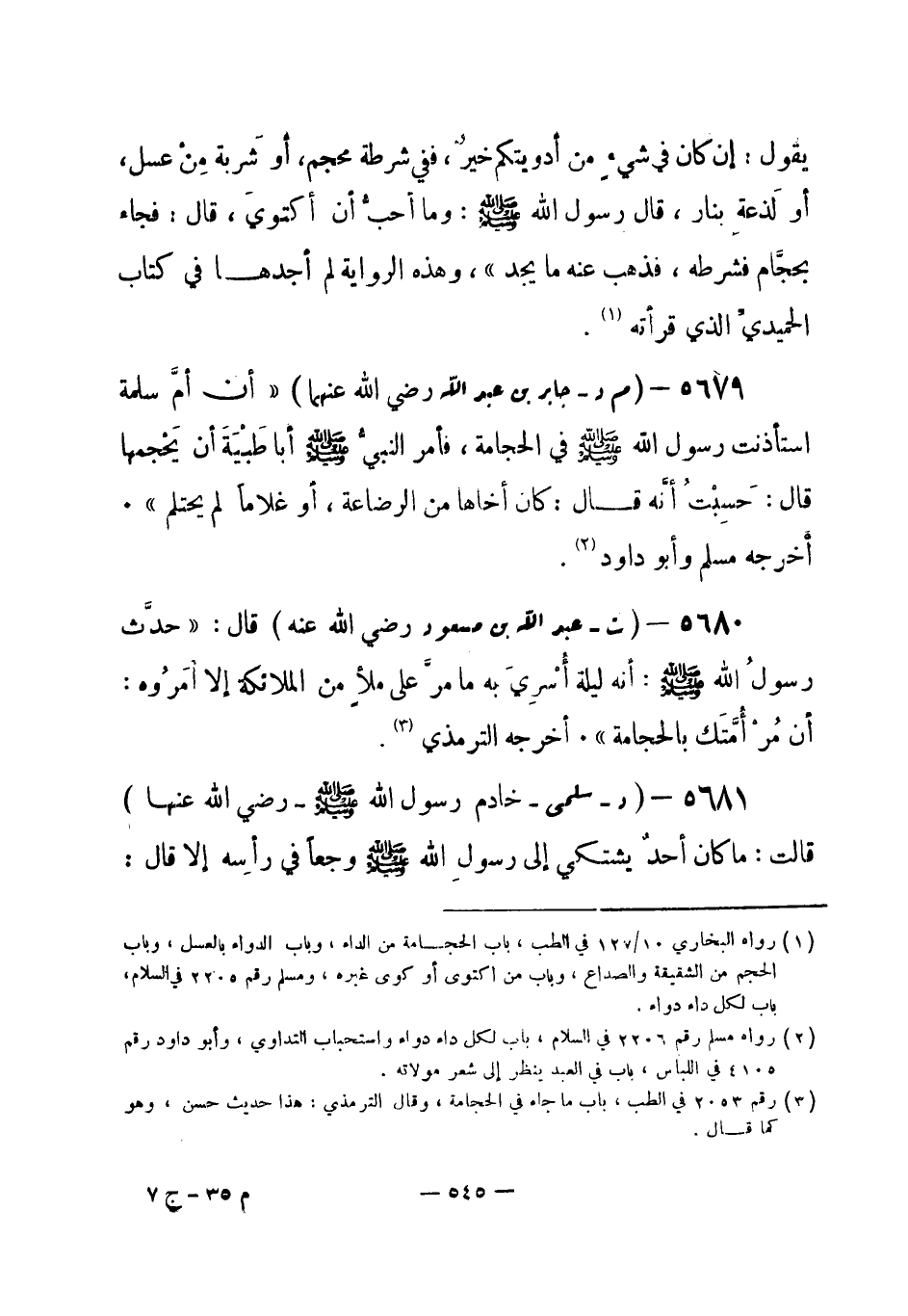 5680 - (ت) عبد الله بن مسعود - رضي الله عنه - قال: «حدَّث رسول الله - صلى الله عليه وسلم-: أنه ليلة أُسْرِيَ به ما مرَّ على ملأ من الملائكة إلا أمَرُوه: أن مُرْ أمَّتَك بالحجامة» أخرجه الترمذي (¬1) .