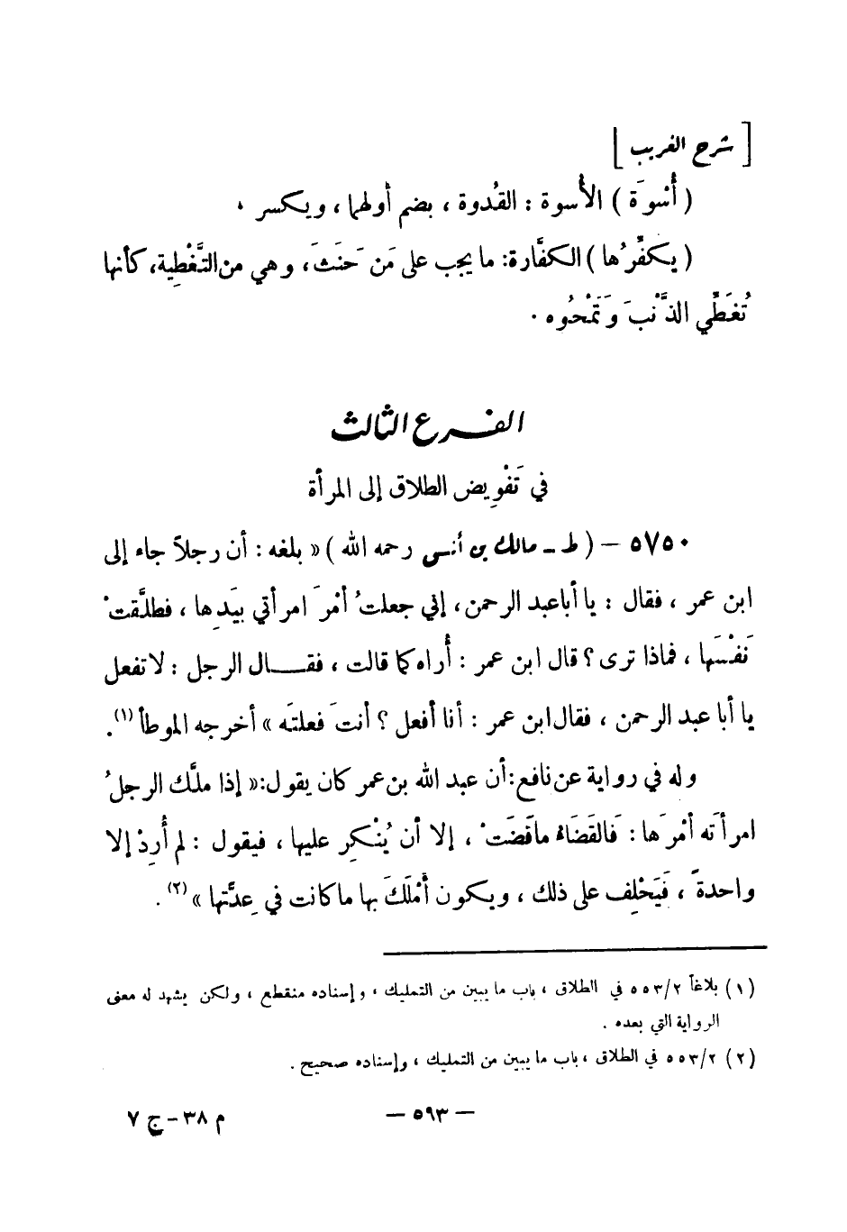 (¬1) بلاغاً 2 / 553 في الطلاق، باب ما يبين من التمليك، وإسناده منقطع، ولكن يشهد له معنى الرواية التي بعده.