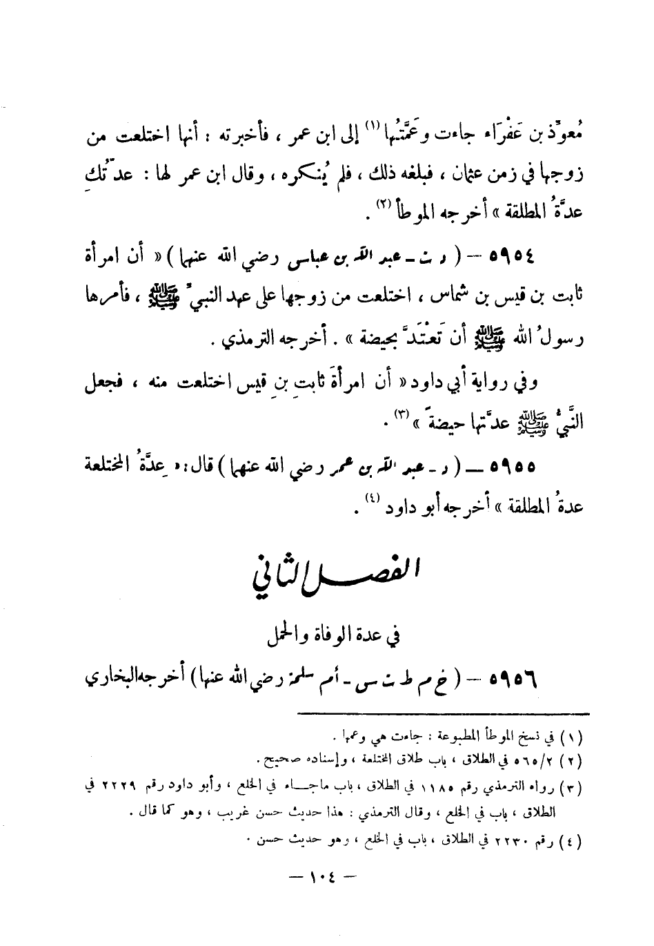 5955 - (د) عبد الله بن عمر - رضي الله عنهما - قال: «عِدَّةُ المختلعة عدةُ المطلقة» . أخرجه أبو داود (¬1) .