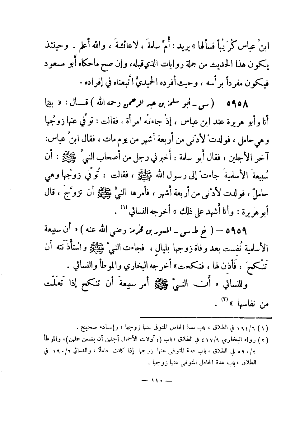 (¬1) رواه البخاري 9 / 417 في الطلاق، باب {وأولات الأحمال أجلهن أن يضعن حملهن} ، والموطأ 2 / 590 في الطلاق، باب عدة المتوفى عنها زوجها إذا كانت حاملاً، والنسائي 6 / 190 في الطلاق، باب عدة الحامل المتوفى عنها زوجها.