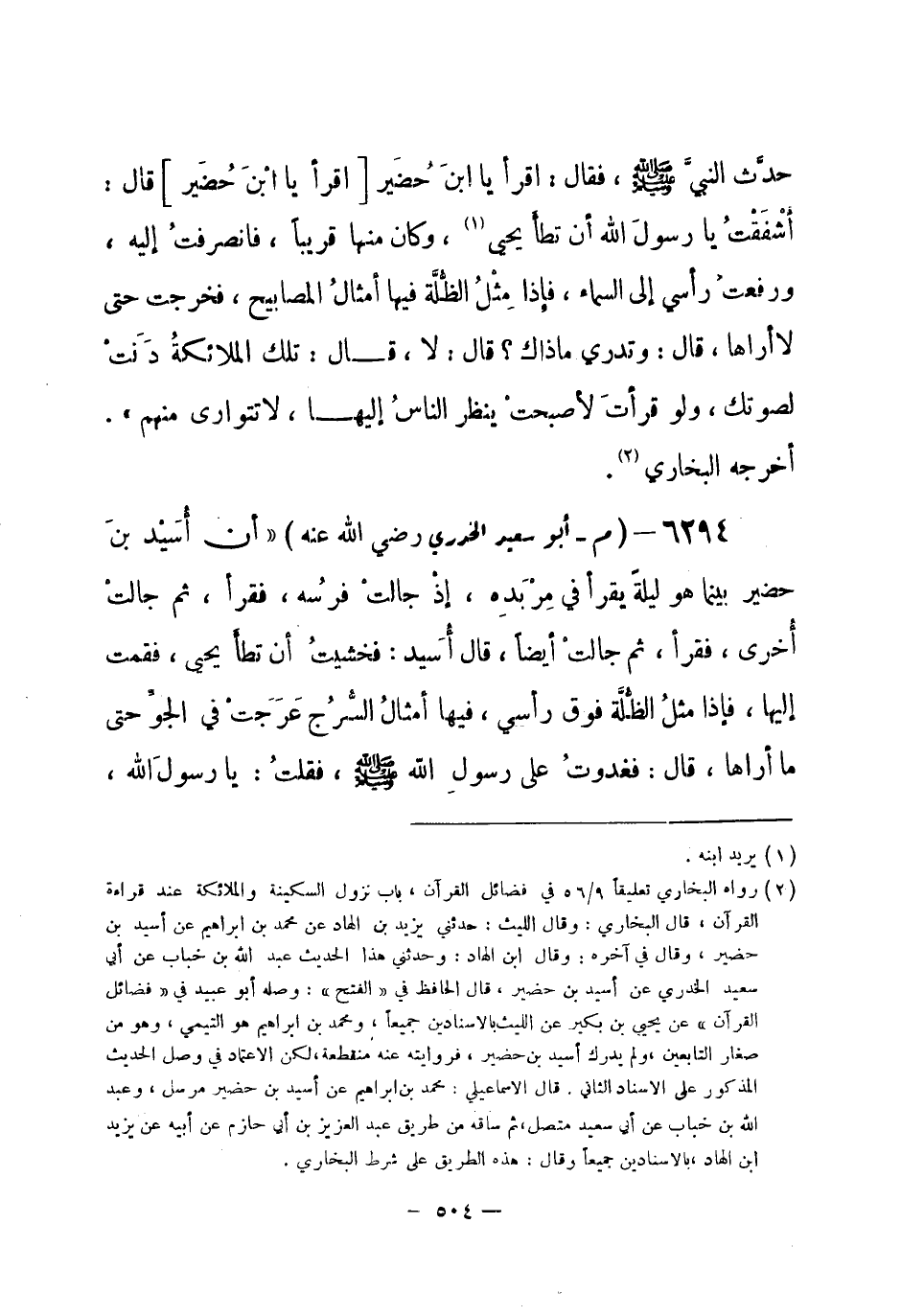 (¬1) رقم (796) في صلاة المسافرين، باب نزول السكينة لقارئ القرآن.