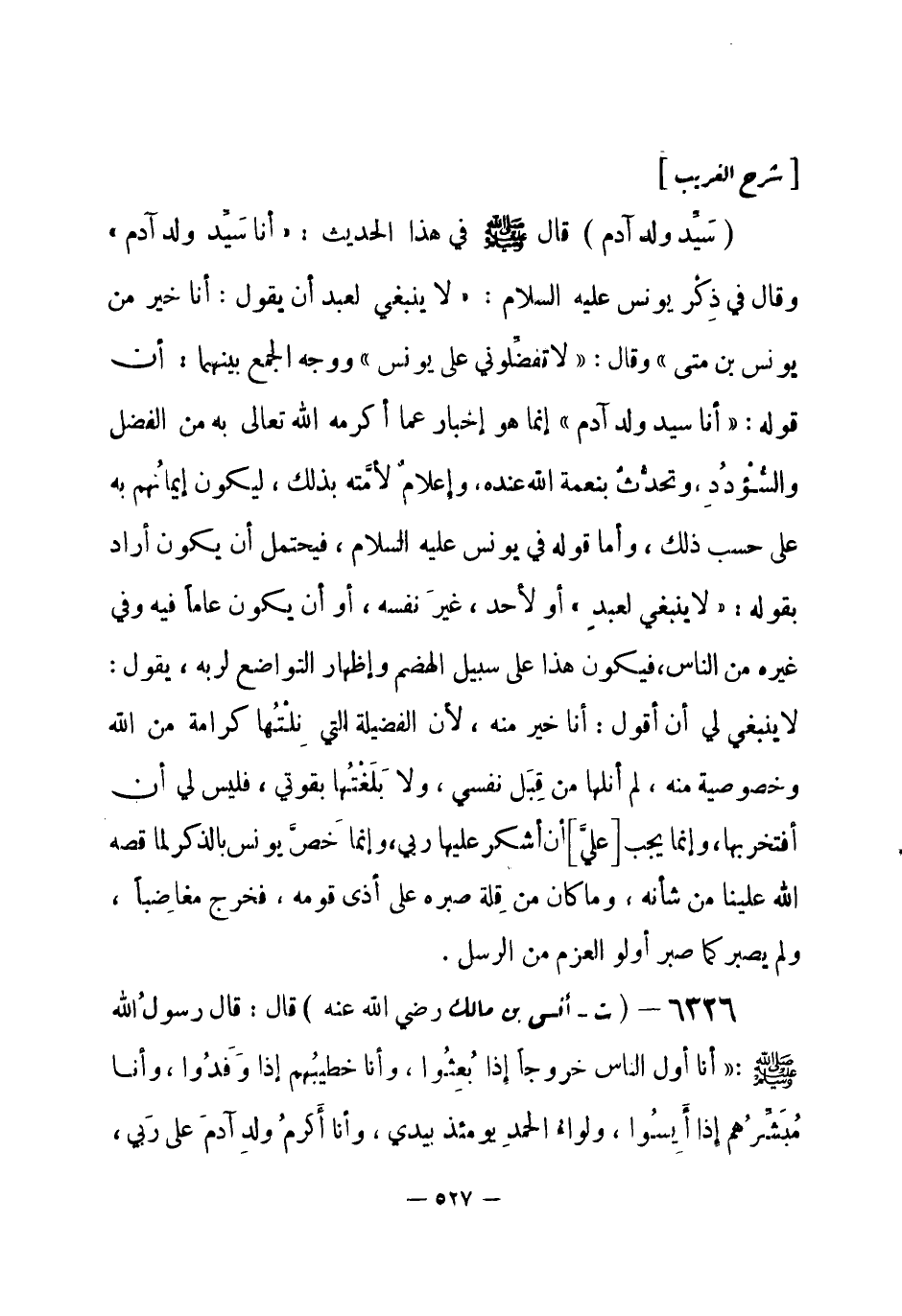 6326 - (ت) أنس بن مالك - رضي الله عنه - قال: قال رسولُ الله - صلى الله عليه وسلم-: «أنا أول الناس خروجاً إِذا بُعِثُوا، وأنا خطيبُهم إذا وَفَدُوا، وأنا مُبَشِّرُهم إِذا أَيِسُوا، ولواءُ الحمدِ يومئذ بيدي، وأنا أَكرمُ ولدِ آدمَ على رَبي، -[528]- ولا فخر» أخرجه الترمذي (¬1) .