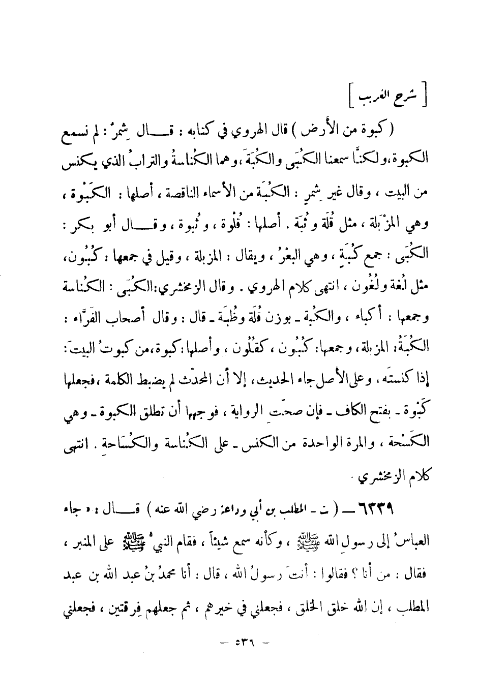 6339 - (ت) المطلب بن أبي وداعة - رضي الله عنه - قال: «جاء العباسُ إلى رسولِ الله - صلى الله عليه وسلم-، وكأنه سمع شيئاً، فقام النبيُّ - صلى الله عليه وسلم- على المنبر، فقال: من أنا؟ فقالوا: أنتَ رسولُ الله، قال: أنا محمدُ بنُ عبد الله بن عبد المطلب، إن الله خلق الخلق، فجعلني في خيرهم، ثم جعلهم فِرقتين، فجعلني -[537]- في خيرِهِم فِرقة، ثم جعلهم قبائلَ، فجعلني في خيرهم قبيلة، ثم جعلهم بُيوتاً، فجعلني في خيرهم بيتاً، وخيرِهِم نَفْسَاً» أخرجه الترمذي (¬1) .