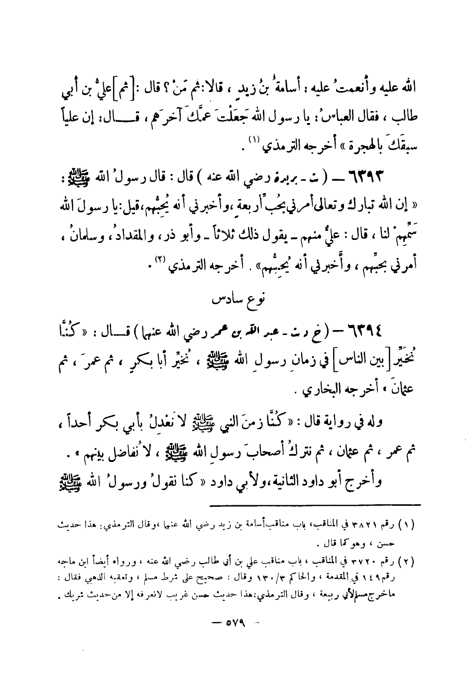 (¬1) رواه البخاري 7 / 14 في فضائل أصحاب النبي صلى الله عليه وسلم، باب فضل أبي بكر بعد النبي صلى الله عليه وسلم، وباب مناقب عثمان بن عفان، وأبو داود رقم (4627) و (4628) في السنة، باب في التفضيل، والترمذي رقم (3707) في المناقب، باب مناقب عثمان بن عفان رضي الله عنه، وانظر " الفتح " في شرح هذا الحديث 7 / 14 و 15.