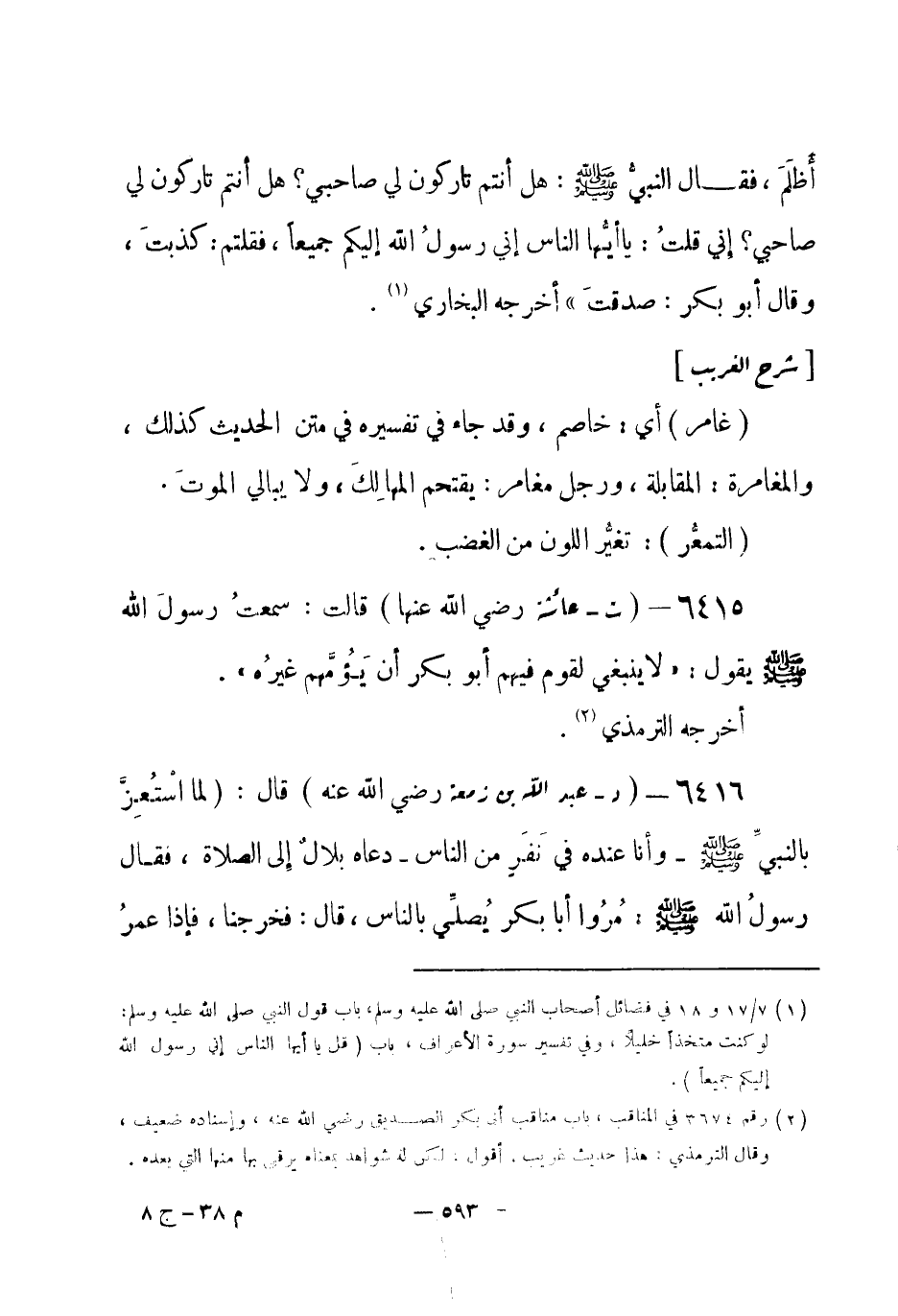 S (استُعِزَّ) بالمريض: إذا غلب على نفسه من شدة المرض، وأصله من العِزَّة، وهي الغلبة والاستيلاء على الشيء. (مجهراً) رجل مجهر، أي: صاحبُ جَهْرٍ ورفعٍ لصوته، يقال: جهر الرجل صوته وأجهر: إذا عرف بالجهر، فهو جاهر ومجهر.