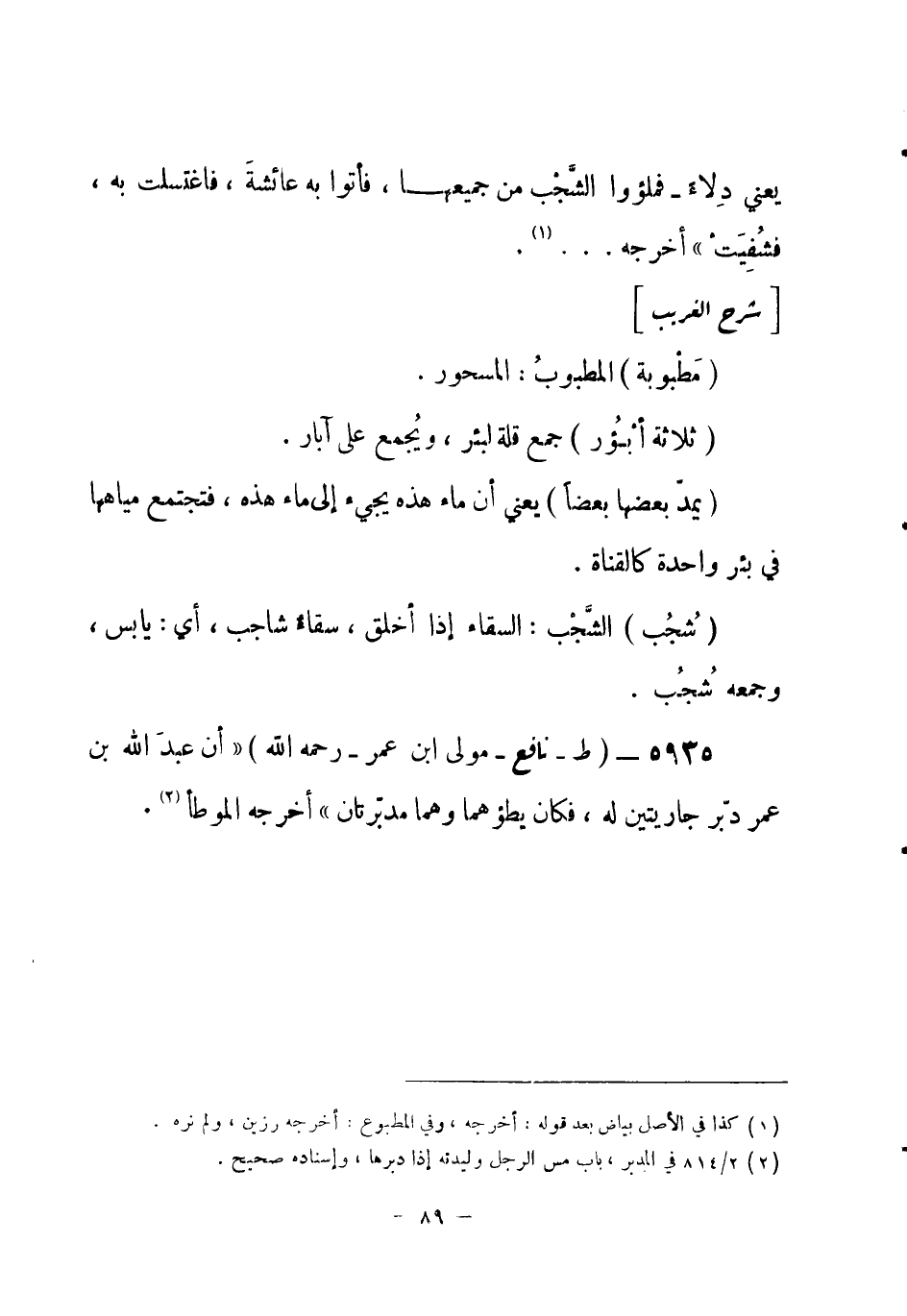5935 - (ط) نافع - مولى ابن عمر - رحمه الله - «أن عبد الله بن عمر دبّر جاريتين له، فكان يطؤهما وهما مدبّرتان» . أخرجه الموطأ (¬1) .