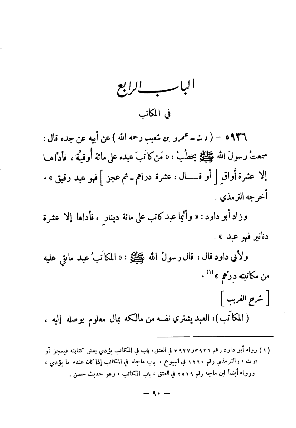 (¬1) رواه أبو داود رقم (3926) و (3927) في العتق، باب في المكاتب يؤدي بعض كتابته فيعجز أو يموت، والترمذي رقم (1260) في البيوع، باب ما جاء في المكاتب إذا كان عنده ما يؤدي، ورواه أيضاً ابن ماجة رقم (2519) في العتق، باب المكاتب، وهو حديث حسن.