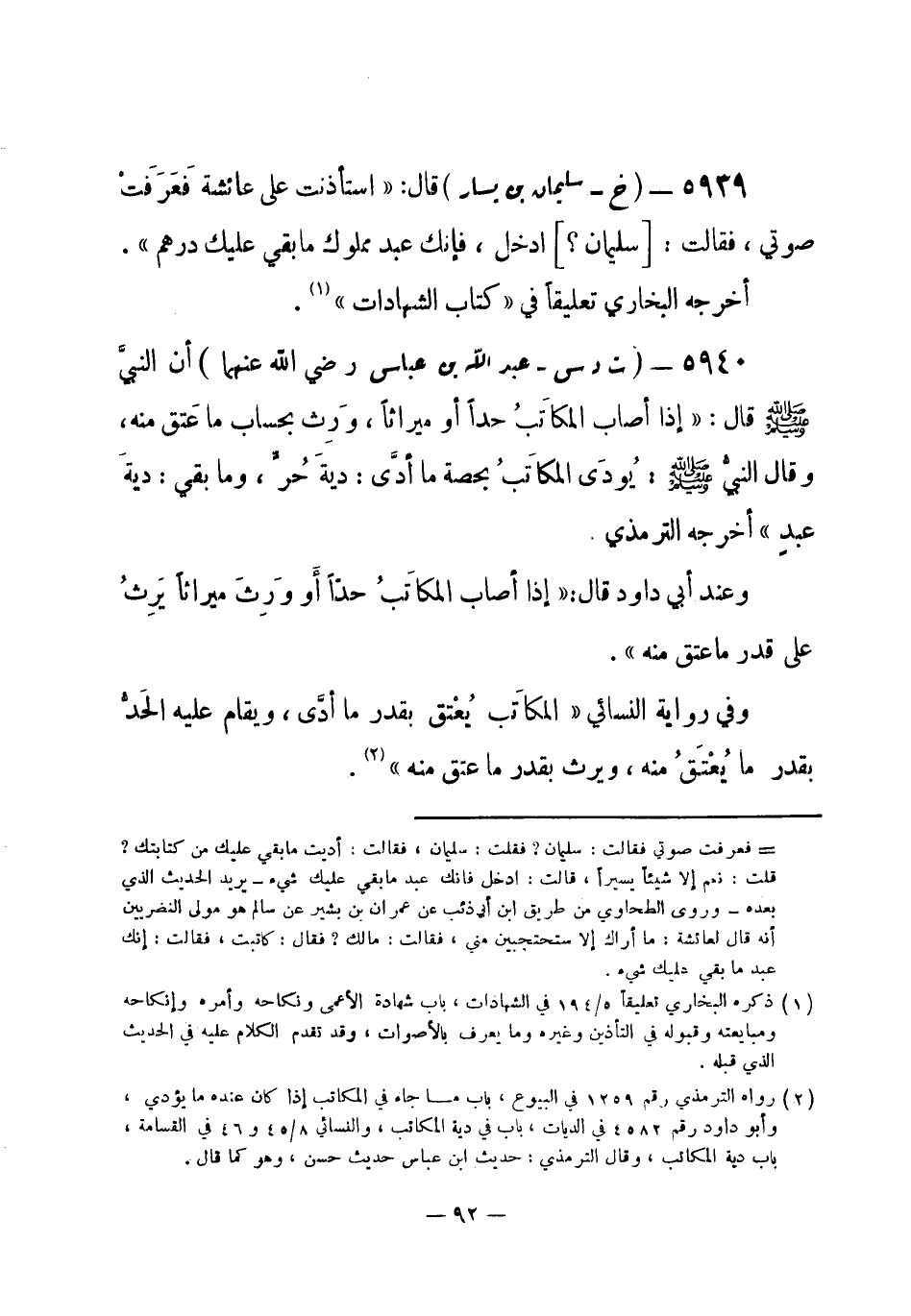 (¬1) رواه الترمذي رقم (1259) في البيوع، باب ما جاء في المكاتب إذا كان عنده ما يؤدي، وأبو داود رقم (4582) في الديات، باب في دية المكاتب، والنسائي 8 / 45 و 46 في القسامة، باب دية المكاتب، وقال الترمذي: حديث ابن عباس حديث حسن، وهو كما قال.