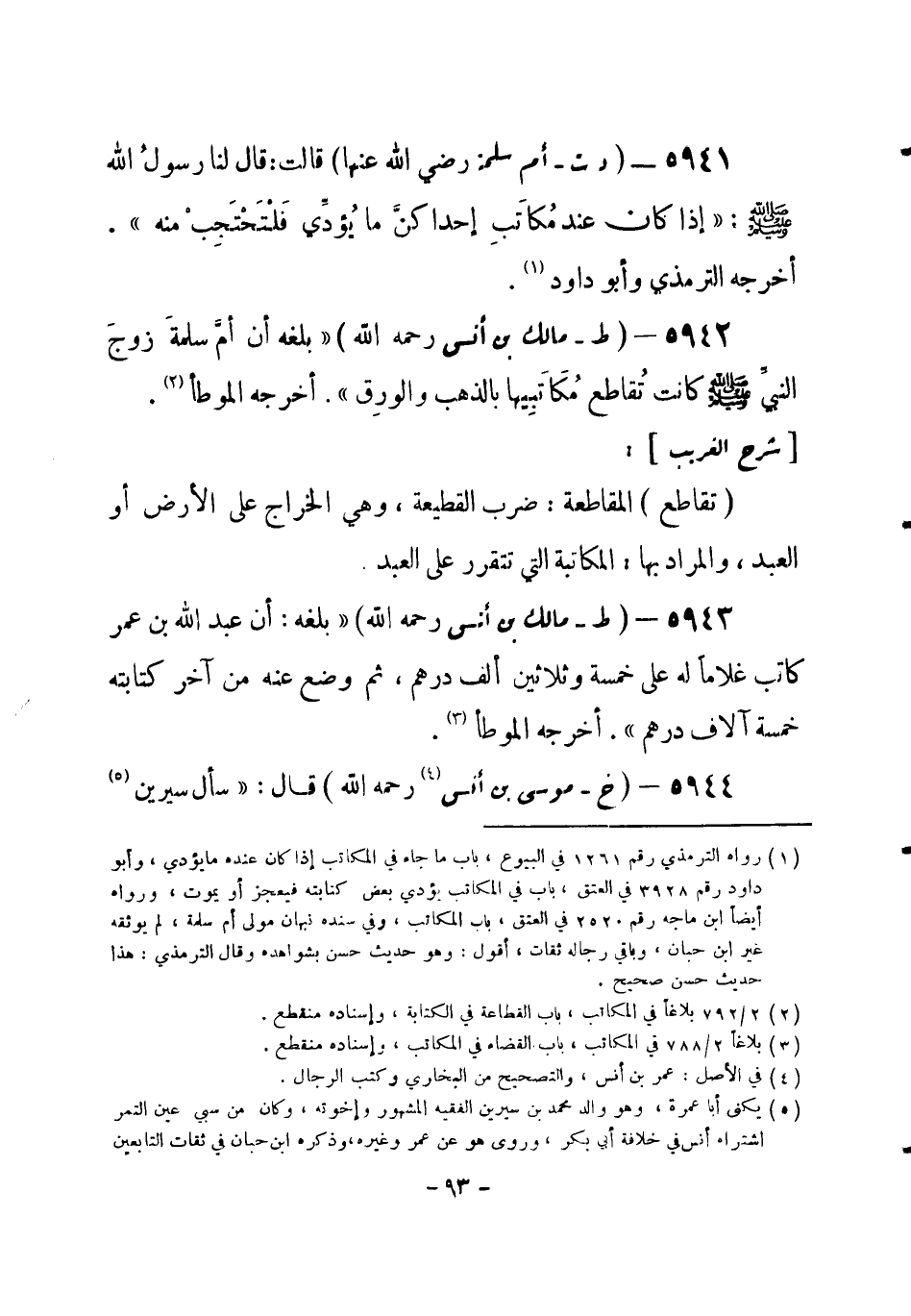 5942 - (ط) مالك بن أنس - رحمه الله -: «بلغه أن أمَّ سلمةَ زوجَ النبيِّ - صلى الله عليه وسلم- كانت تُقاطع مُكَاتَبِيها بالذهب والورِق» . أخرجه الموطأ (¬1) .