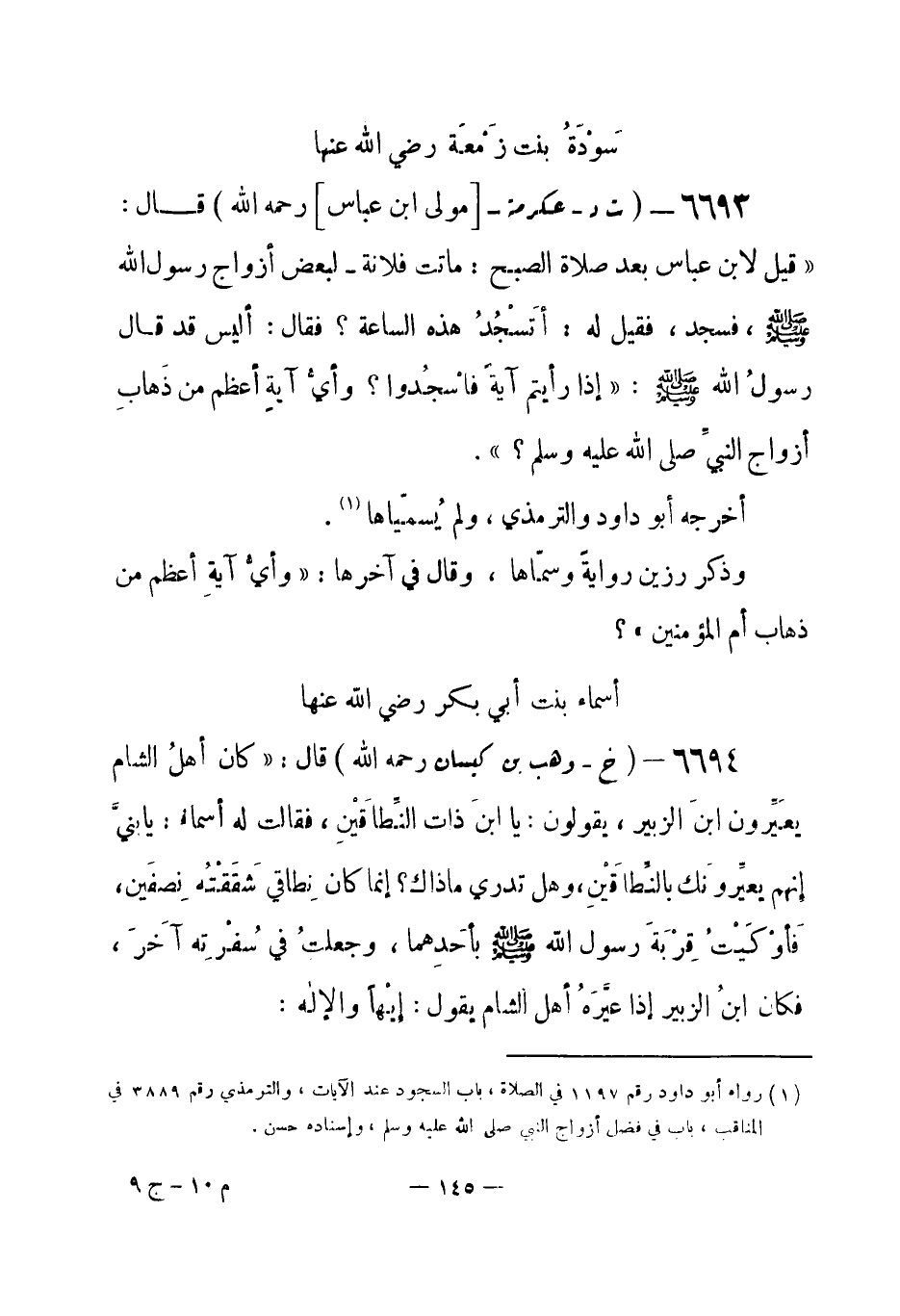 (¬1) رواه أبو داود رقم (1197) في الصلاة، باب السجود عند الآيات، والترمذي رقم (3889) في المناقب، باب في فضل أزواج النبي صلى الله عليه وسلم، وإسناده حسن.