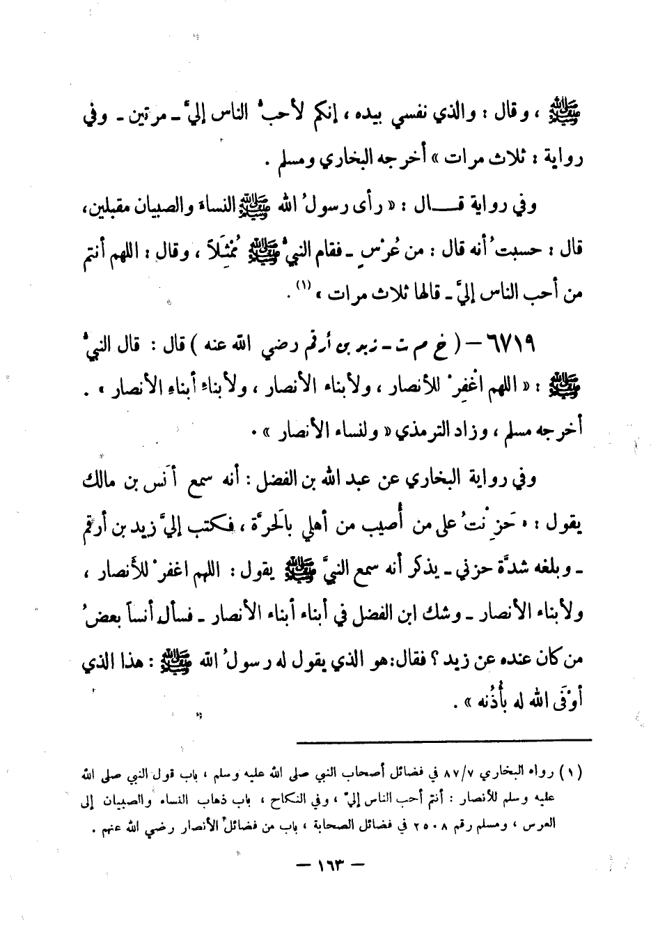 6719 - (خ م ت) زيد بن أرقم - رضي الله عنه - قال: قال النبي - صلى الله عليه وسلم-: «اللهم اغفِرْ للأنصار، ولأبناء الأنصار، ولأبناءِ أبناءِ الأنصار» . أخرجه مسلم، وزاد الترمذي «ولنساء الأنصار» .