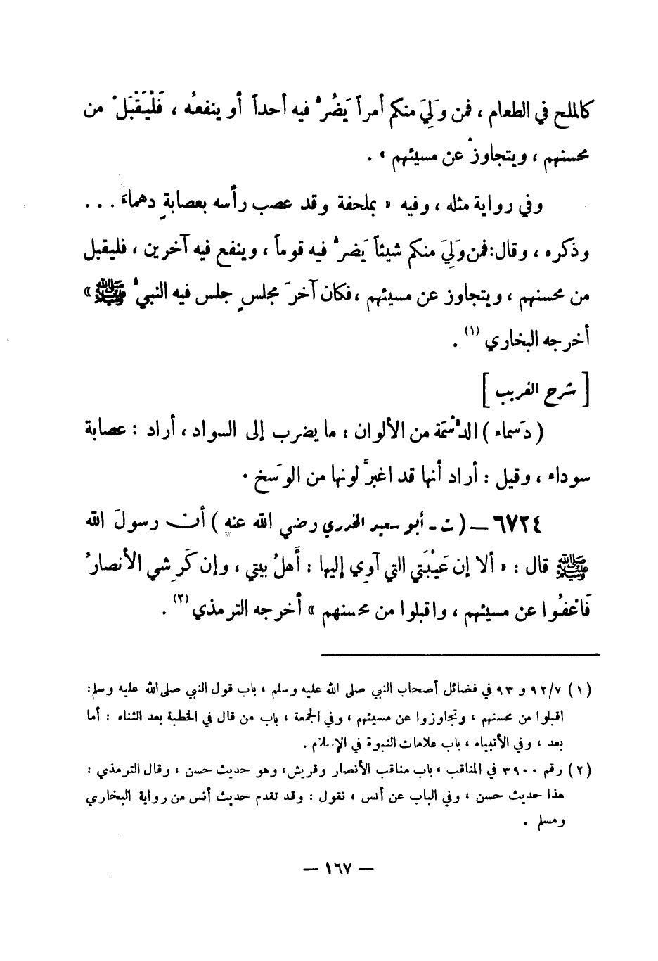 6724 - (ت) أبو سعيد الخدري - رضي الله عنه - أن رسولَ الله - صلى الله عليه وسلم- قال: «ألا إن عَيْبَتي التي آوِي إليها: أهلُ بيتي، وإن كَرِشي الأنصارُ فَاعْفُوا عن مسيئهم، واقبلوا من محسنهم» أخرجه الترمذي (¬1) .