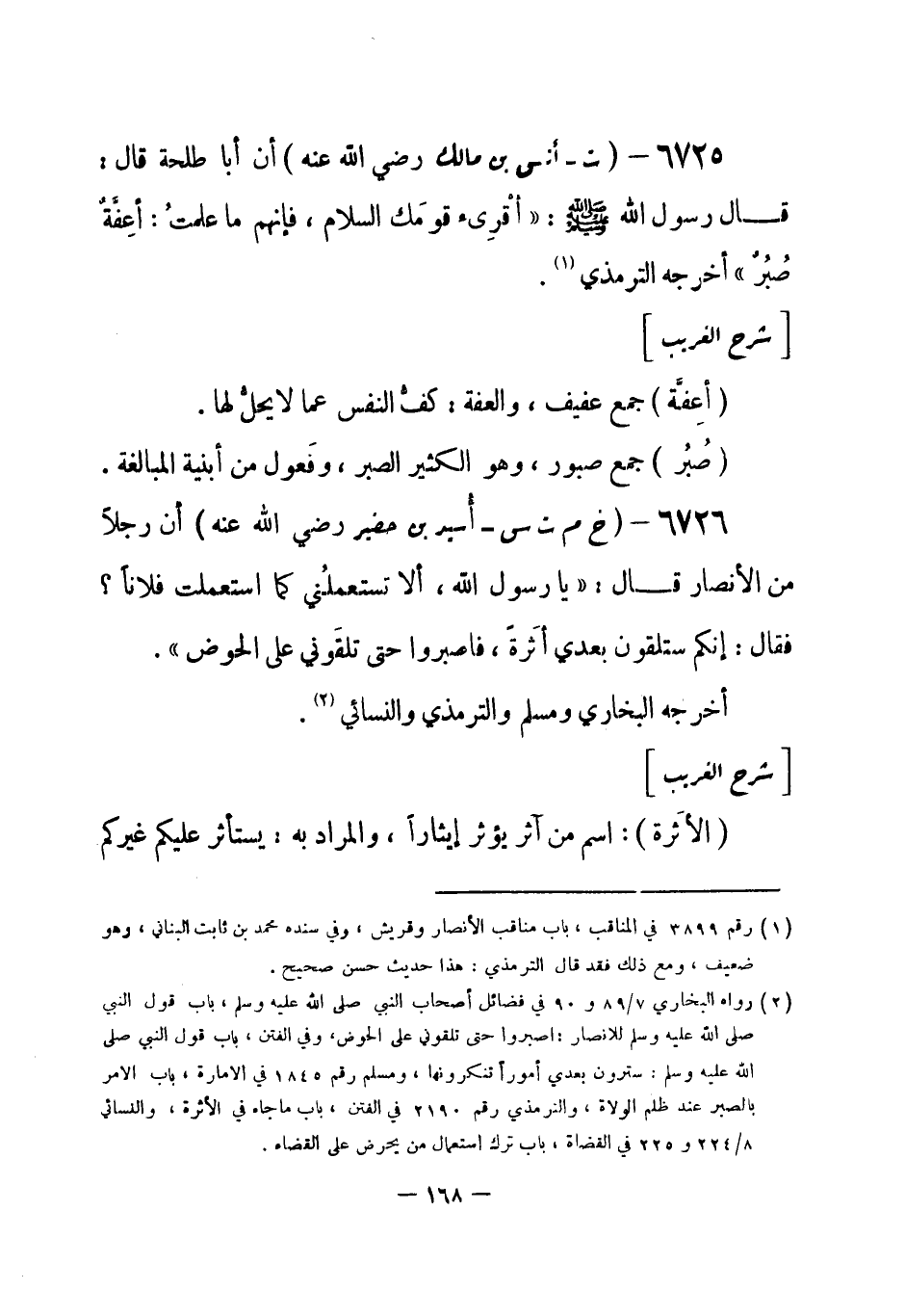 (¬1) رواه البخاري 7 / 89 و 90 في فضائل أصحاب النبي صلى الله عليه وسلم، باب قول النبي صلى الله عليه وسلم للأنصار: " اصبروا حتى تلقوني على الحوض "، وفي الفتن، باب قول النبي صلى الله عليه وسلم: " سترون بعدي أموراً تنكرونها "، ومسلم رقم (1845) في الإمارة، باب الأمر بالصبر عند ظلم الولاة، والترمذي رقم (2190) في الفتن، باب ما جاء في الأثرة، والنسائي 8 / 224 و 225 في القضاة، باب ترك استعمال من يحرض على القضاء.